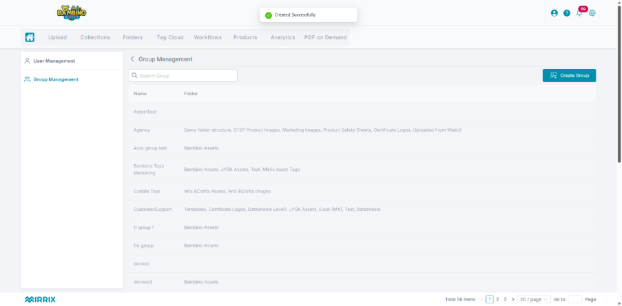 If the process is successful, a confirmation message will appear indicating that the group has been created