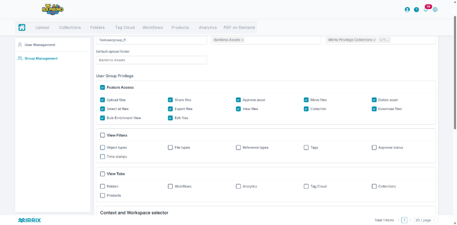 - On the same screen, user privileges are shown under User Group, View Filters, Asset Detail Page, and View Tabs.